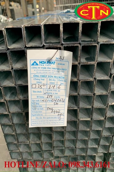 Thép hộp mạ kẽm 25 x 50 x 1.4 x 6m